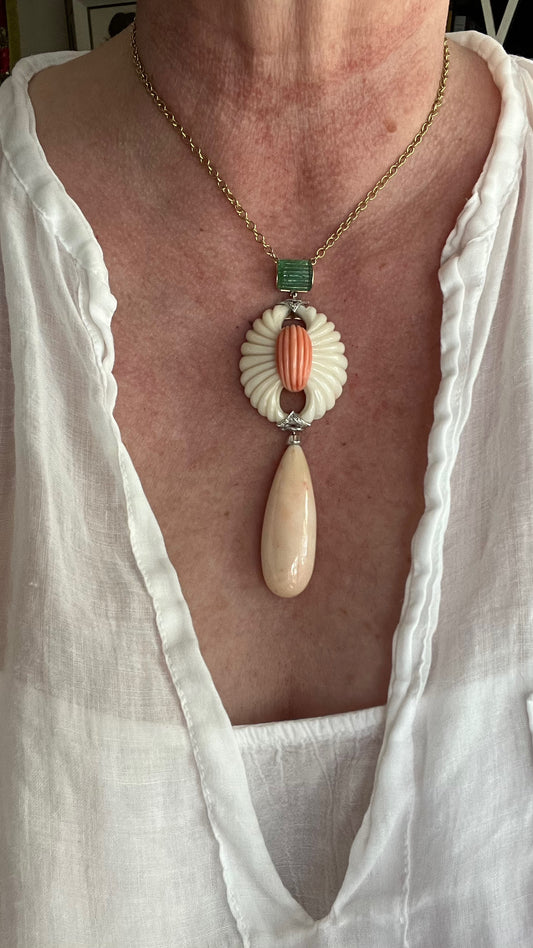 14K Coral and Emerald Necklace