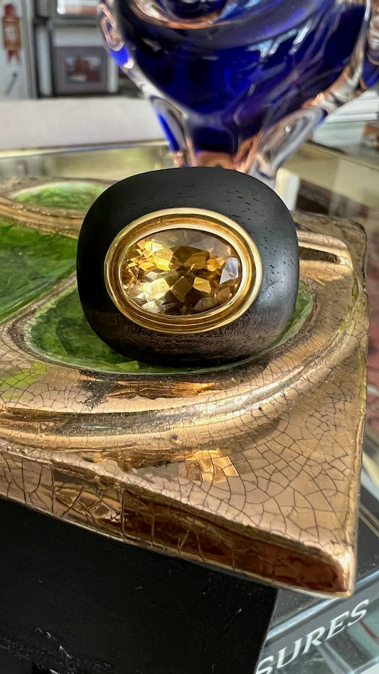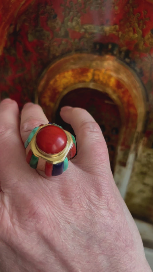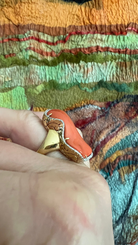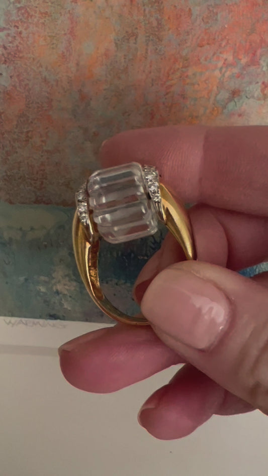 18K Pink Tourmaline, Blue Topaz, and Diamond ring