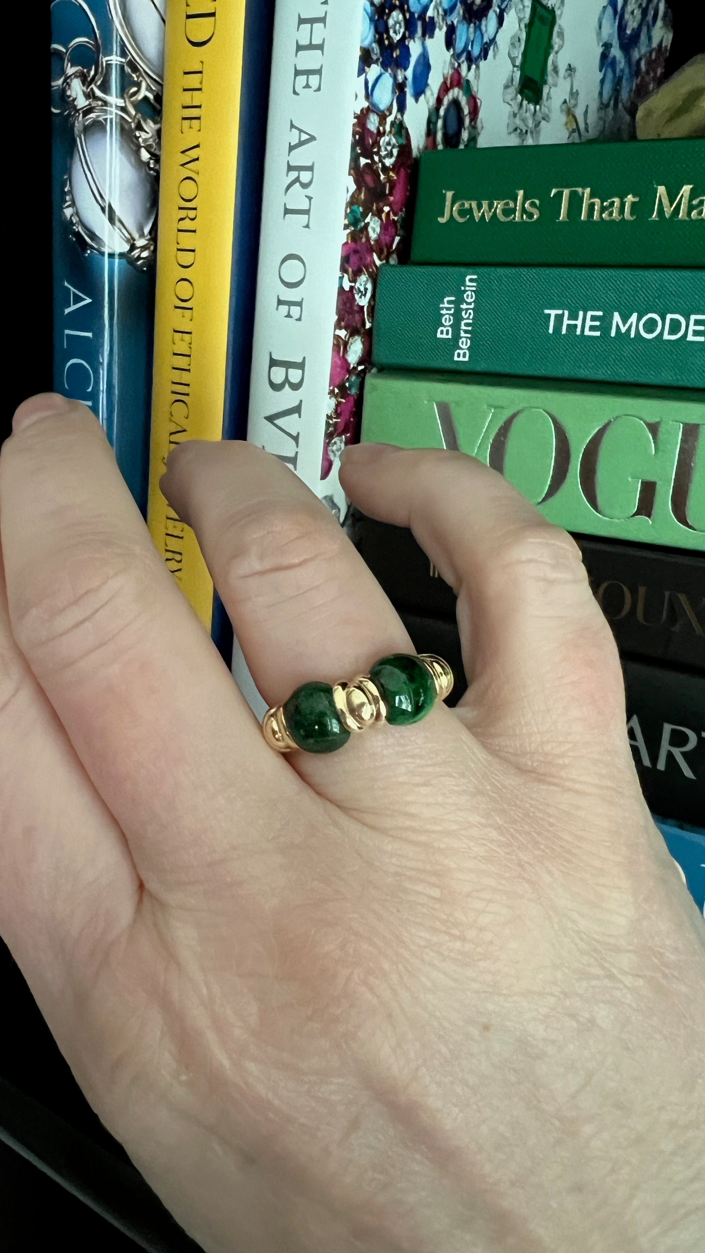 As I was sourcing jewelry in Las Vegas, I came across this petite ring. Being that green is my favorite color, it's no wonder I was drawn to it.