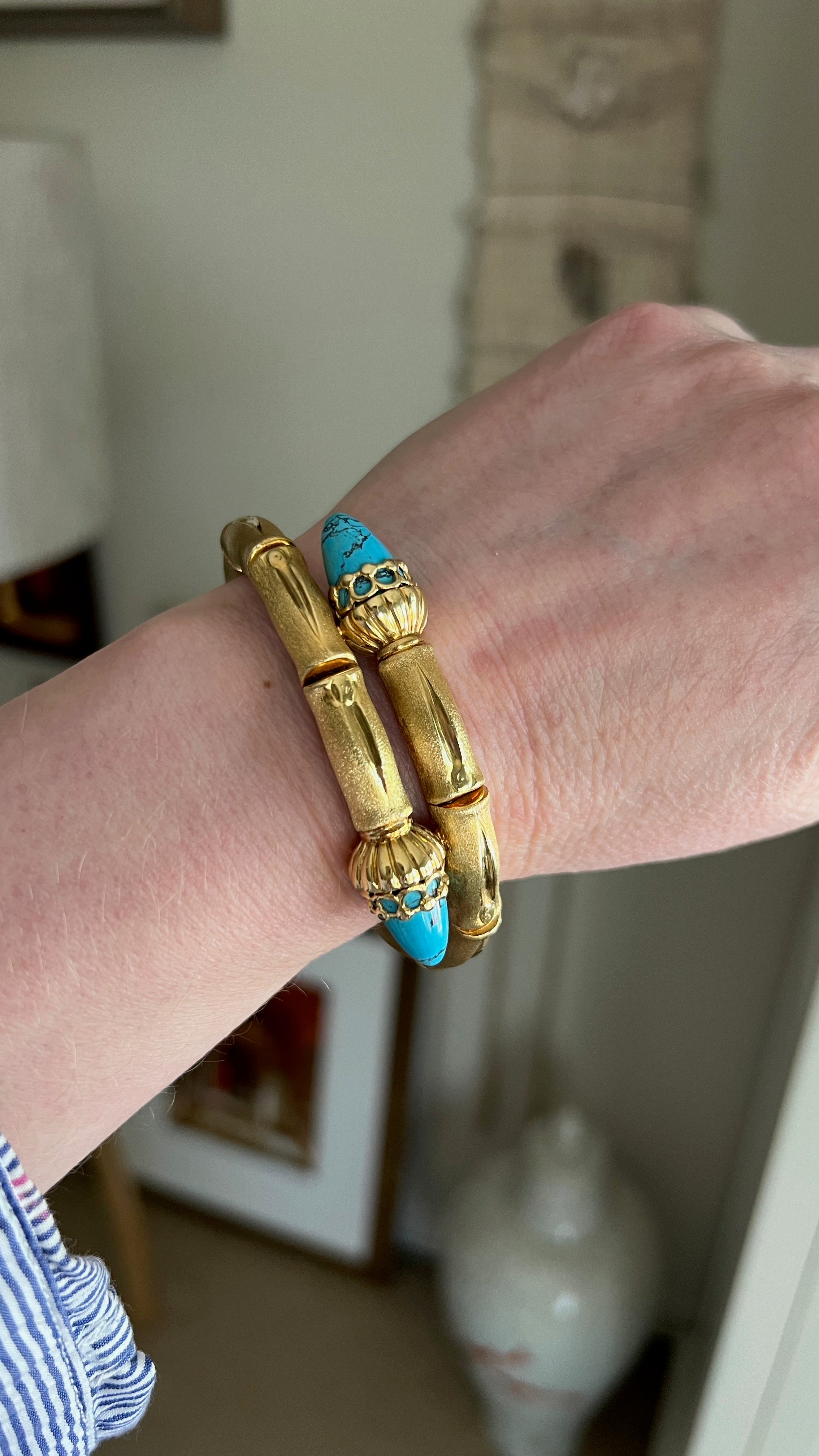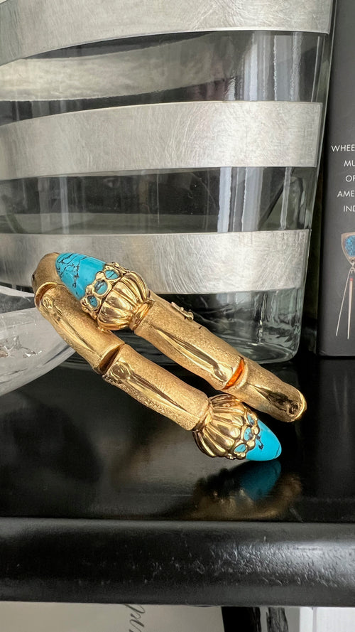 18K French Bamboo and Turquoise Bracelet