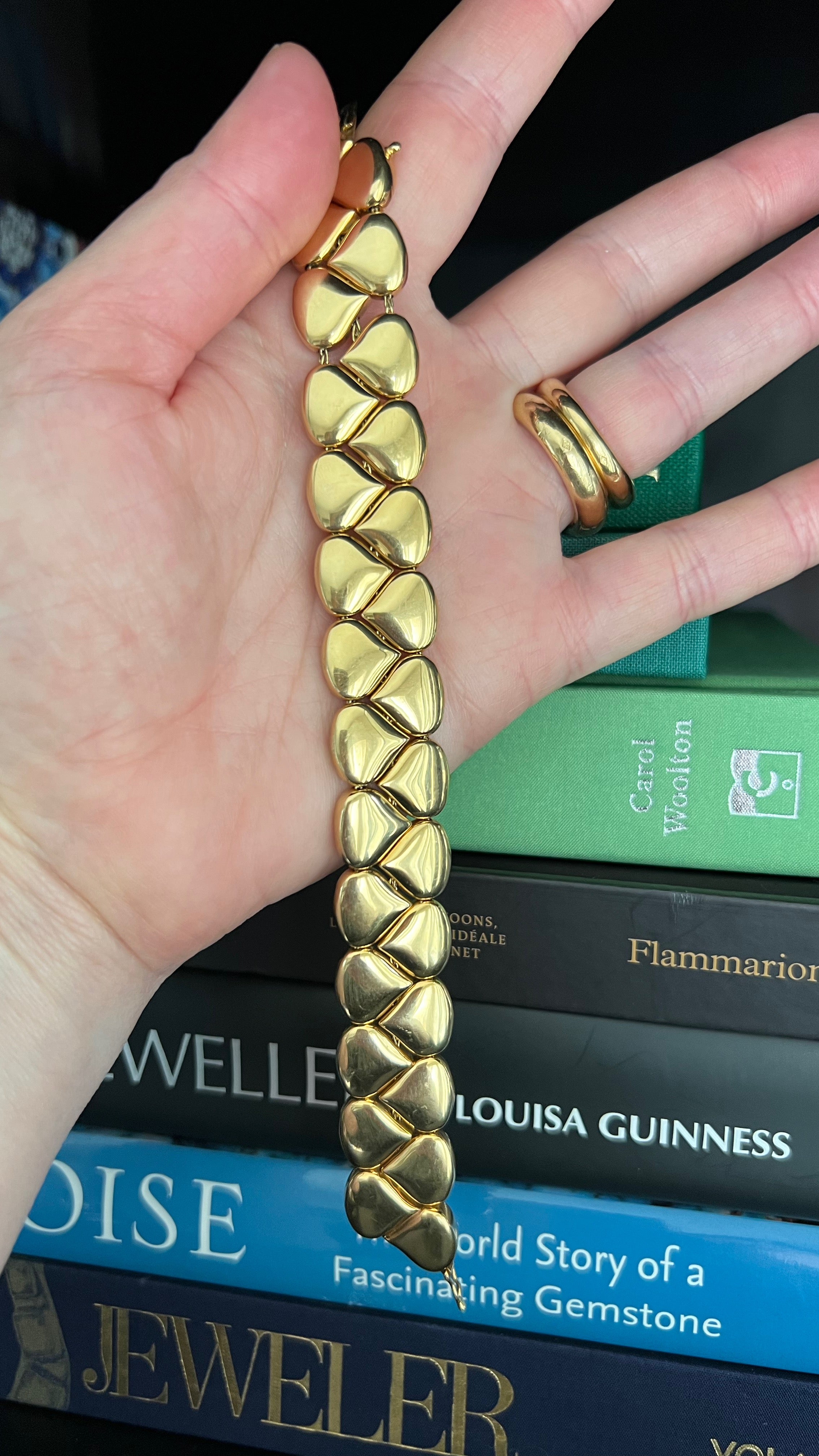 These 18K teardrops are interlocked on 18K chains, and they feel just dreamy on the wrist!