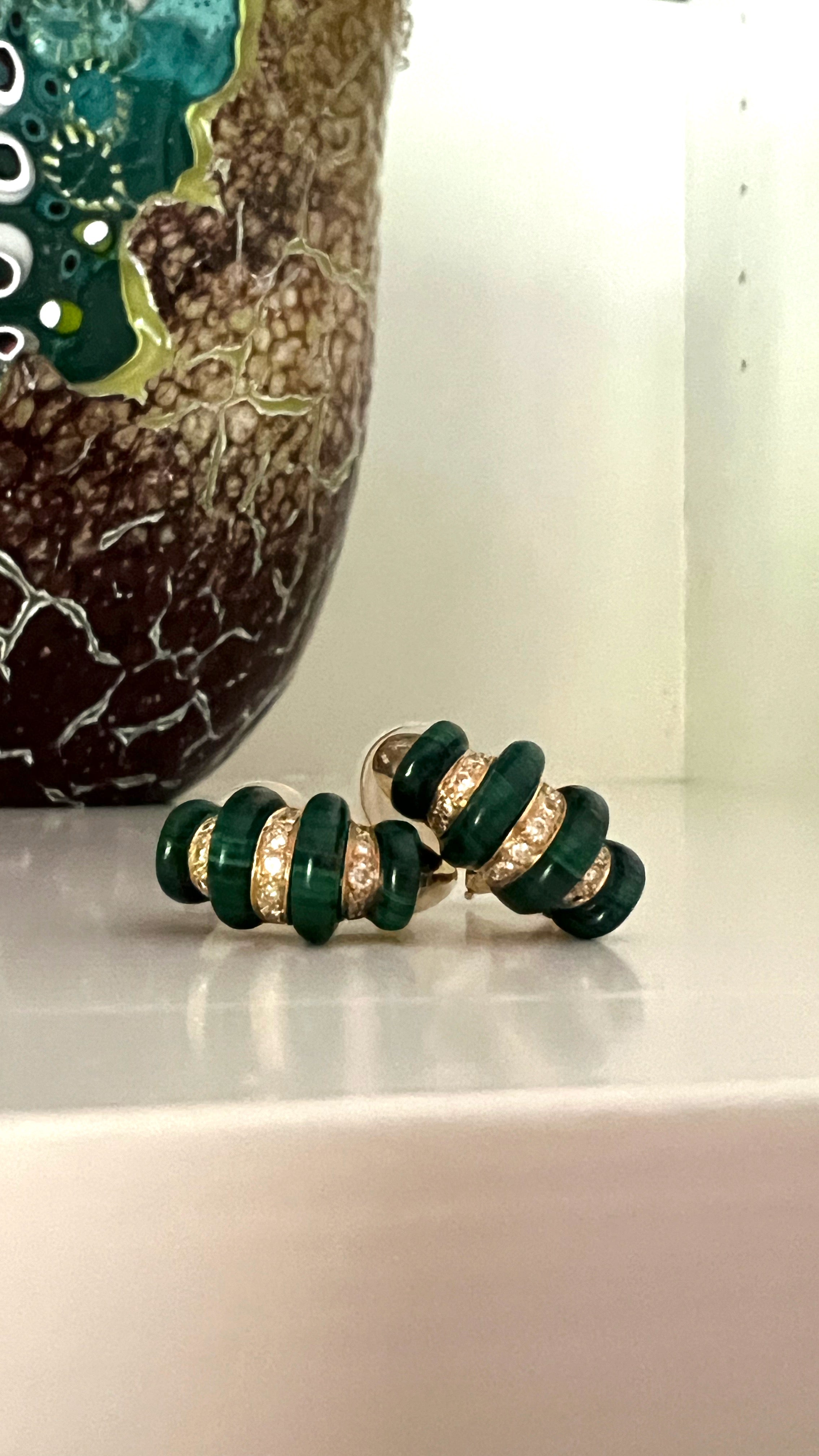 18K Malachite and Diamond earrings