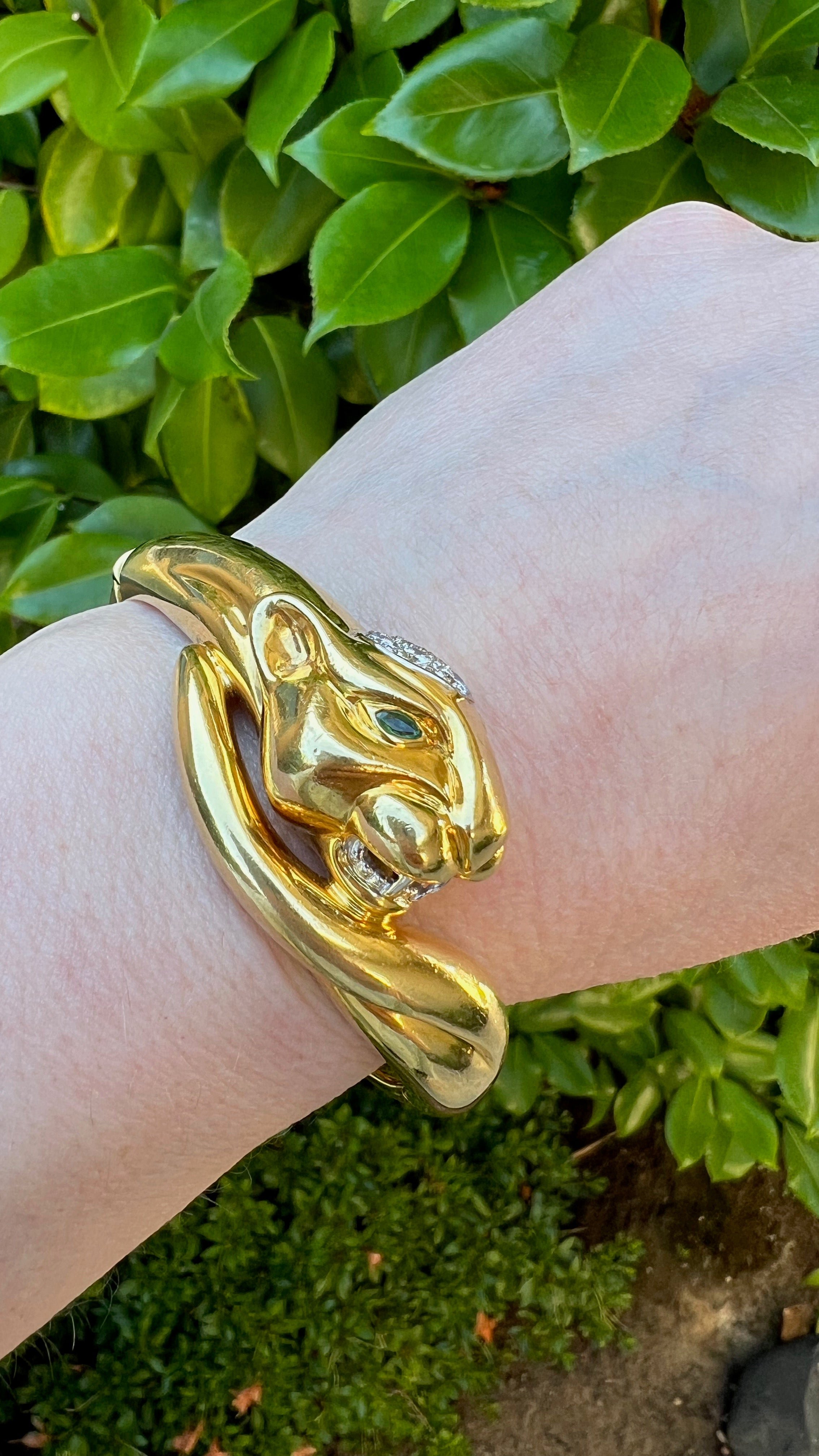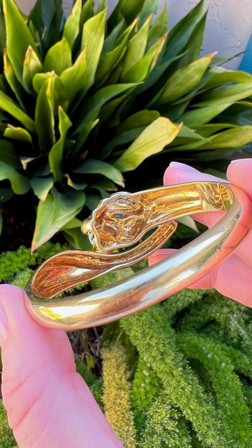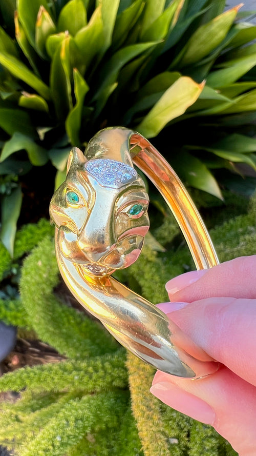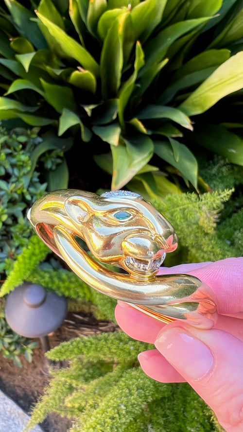 I absolutely LOVE this bracelet! Look at the face of the panther -- fierce and majestic. It's crafted in 18K gold with emerald eyes (about .2 ctw)