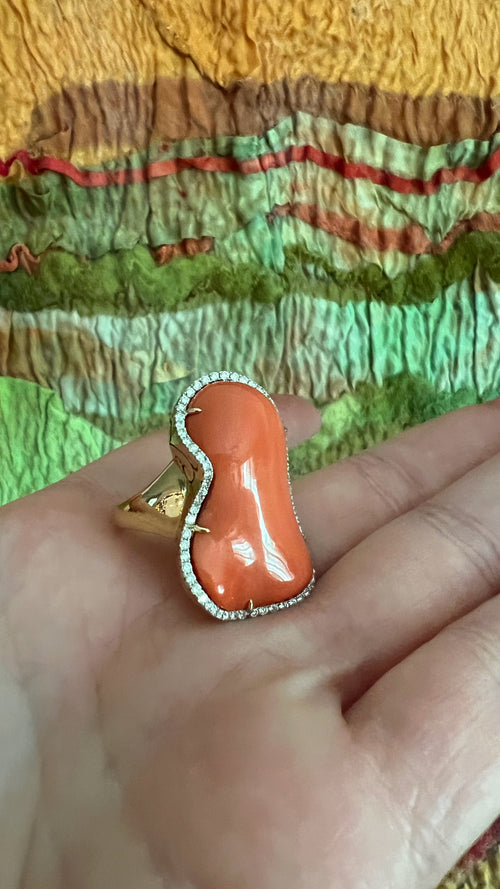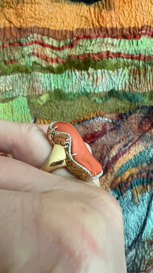 Huge Coral and Diamond Ring