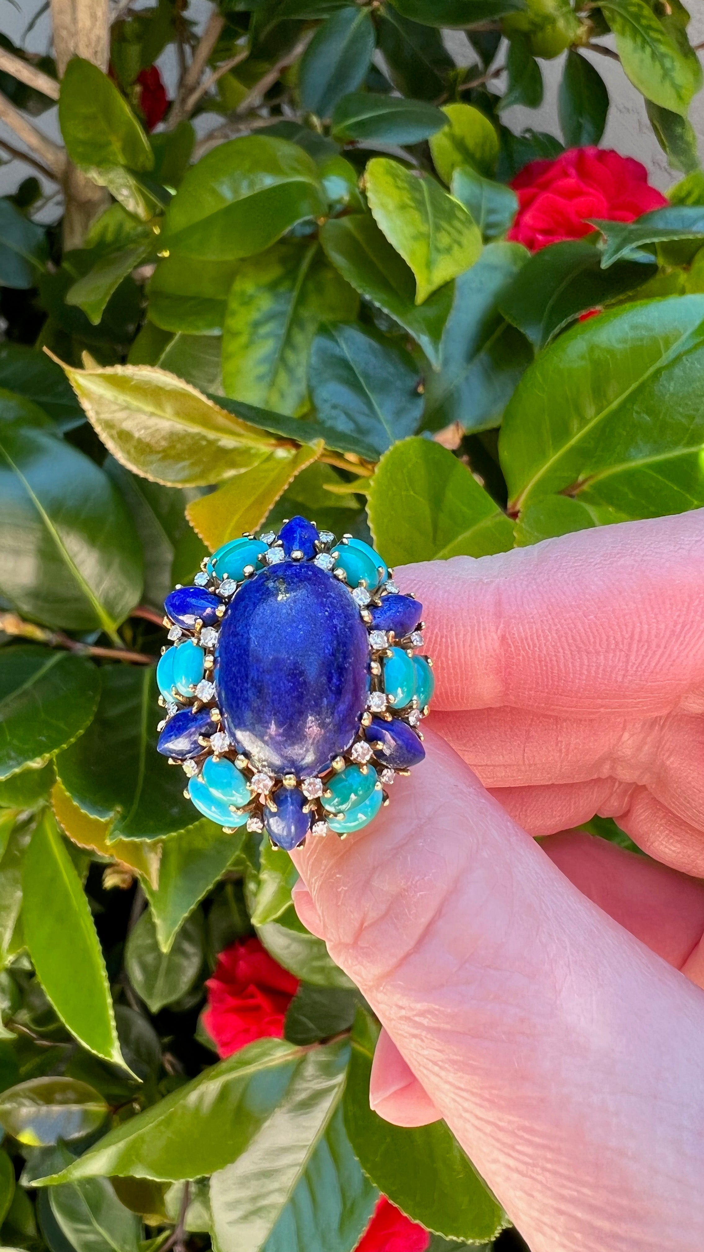 This stunning 18K cocktail ring was sourced in London. I was captured by the combination of the lapis and turquoise!