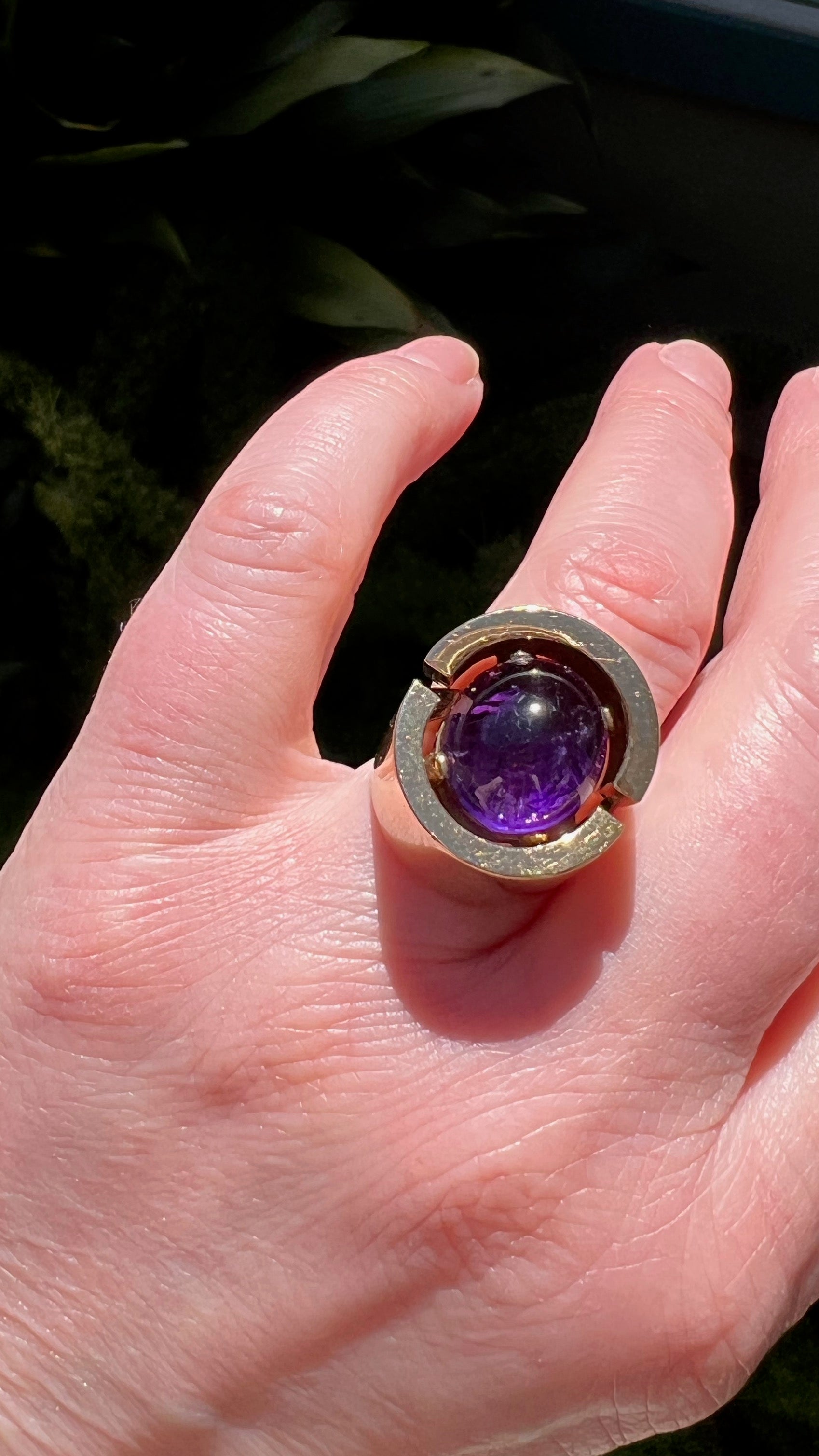 The amethyst cabochon shines in the center.